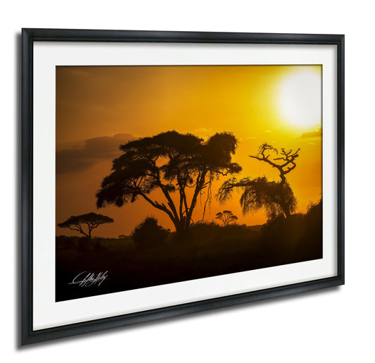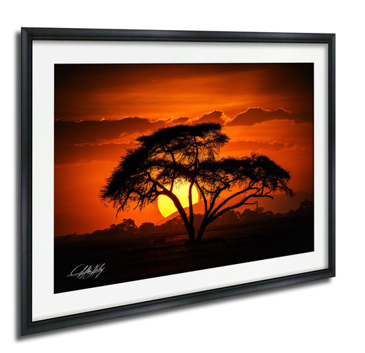African Acacia Tree Print - Safari Wall Art With Sunset Silhouette Metal Artwork